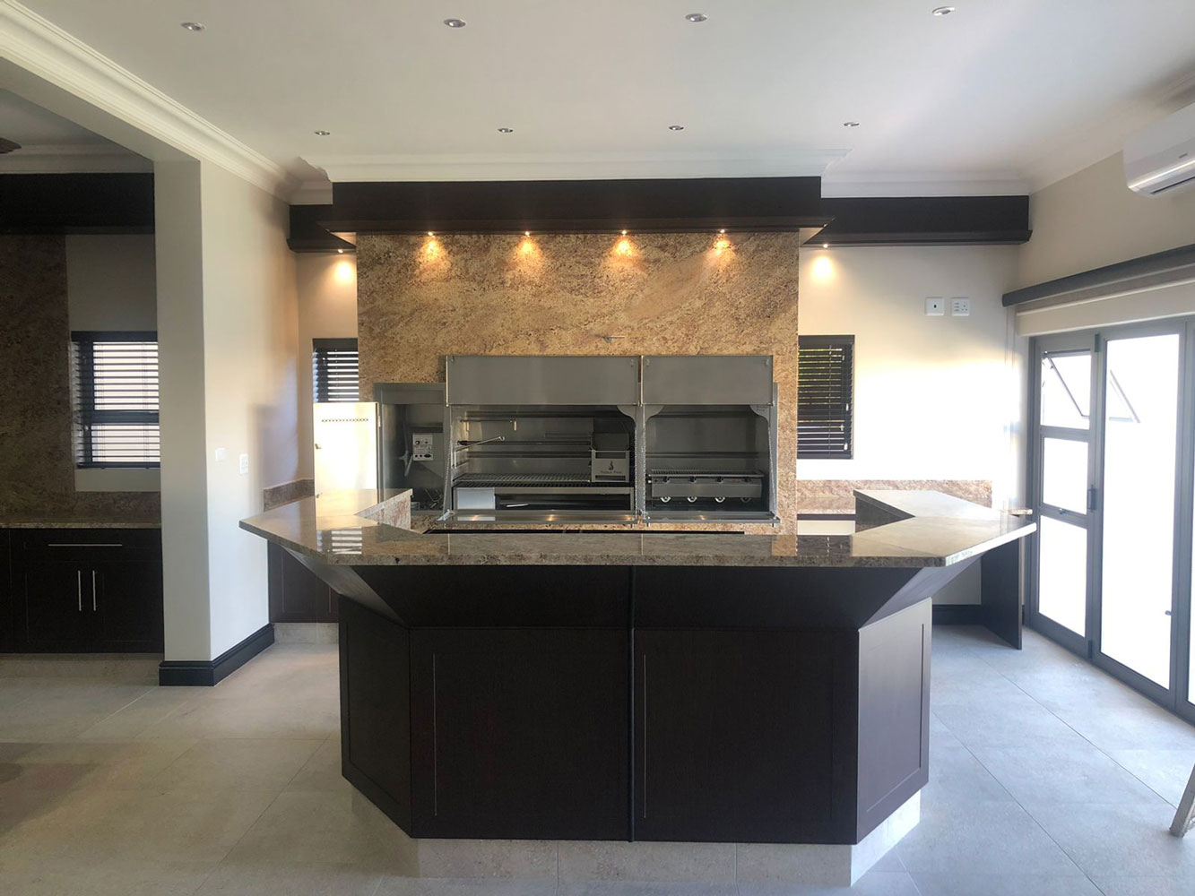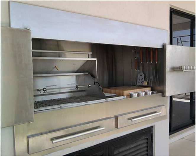 Available standard as a built-in unit or as a Freestanding Braai on a cabinet.