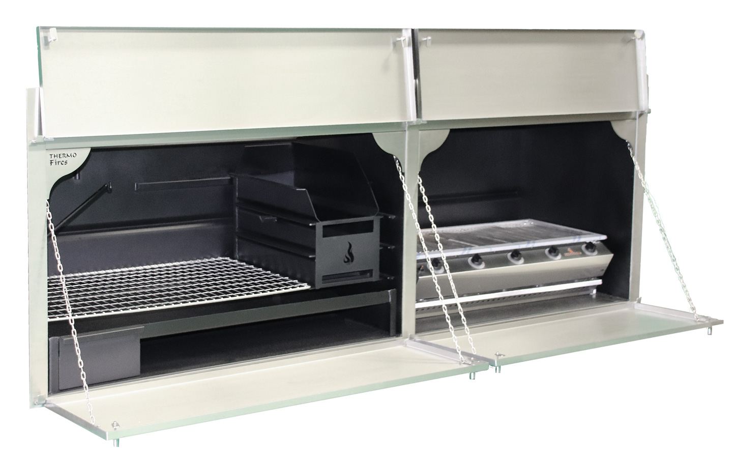 Thermo Fires manufactures a large range of Combination Braais. By combining a wood braai with a gas braai, you have the best of both worlds. And if none of our large range of sizes fit your aplication, we will custom-make a unit to your requirements. Available in mild steel, 3CR12, stainless steel or a combination of materials.