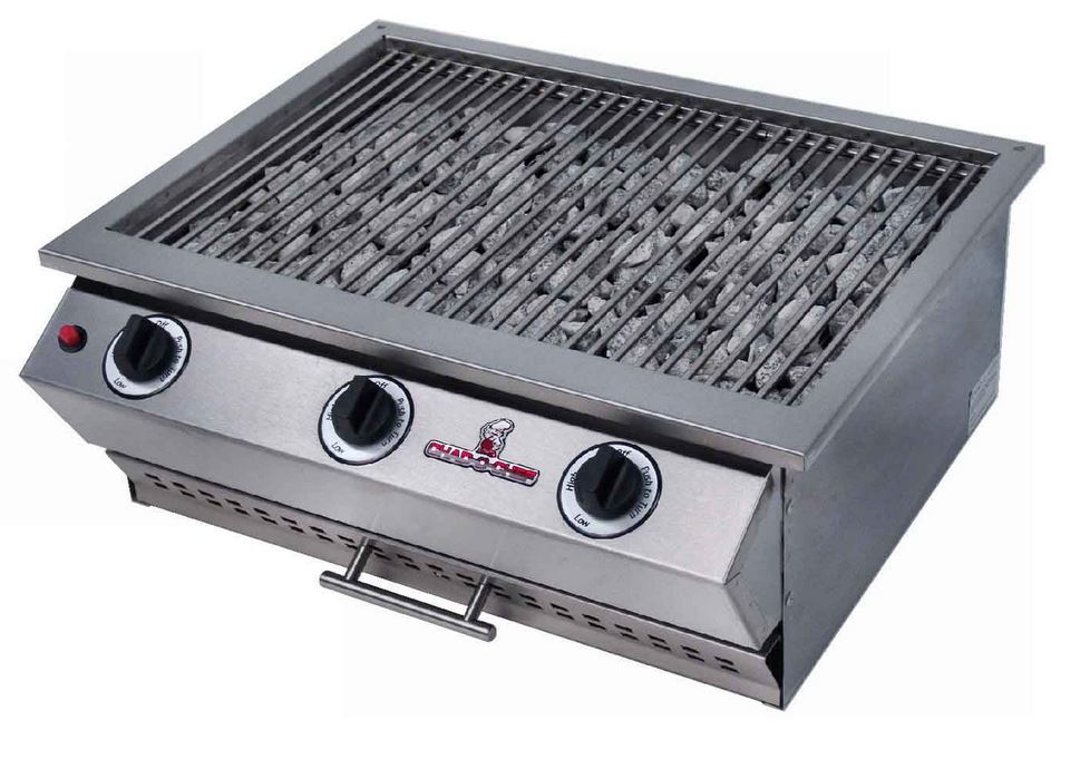 This unit is dropped into your counter top for a sleek, stylish look. A hinged stainless steel cover cleanly hides your grill away when you're done enjoying that great steakhouse taste.
