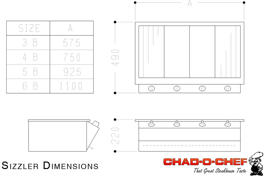 The Chad-o-Chef range is available as Table Top units (Sizzlers), Drop-in Units (Hobs) and Built-in Braais. They have 4 standard sizes: 3, 4, 5 & 6 Burners.