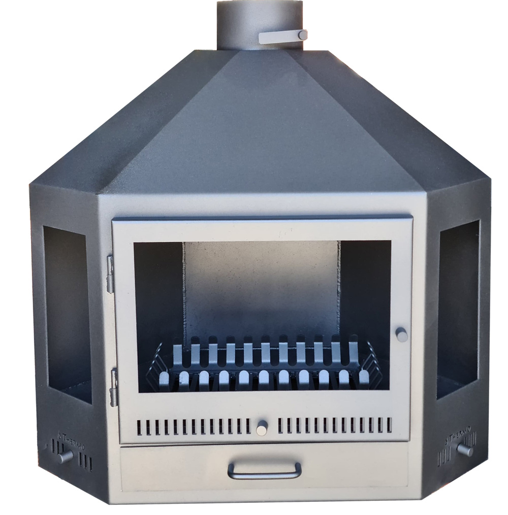 A feature of all Thermo fireplaces are that all standard wood-burning grate baskets has a loose replaceable grid. This makes it much cheaper when replacement becomes neccessary. With the choice of adding a glass door/s, your fireplace will burn more efficiently, using much less wood while radiating more heat into your room.