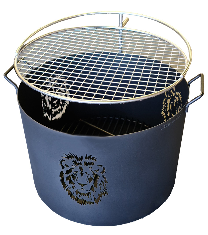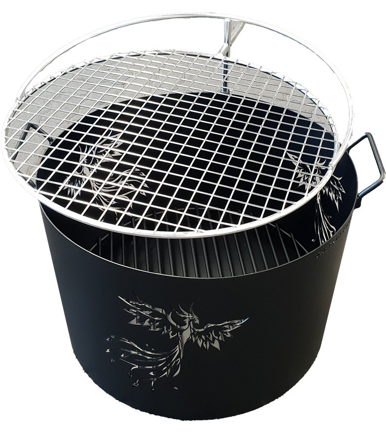 Manufactured using 2mm mildsteel, it has a fixed base and a replaceable fire grid. The Firepit also has handles on the sides to make moving around easy.